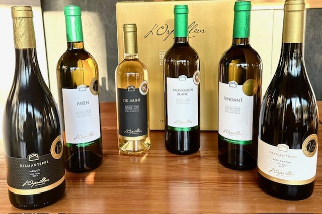 1x Flasche Petite Arvine Diamanterre + 1x Flasche Merlot Diamanterre + 1x Flasche Fendant + 1x Flasche Sauvignon Blanc + 1x Flasche Or Jaune + 1x Flasche Païen